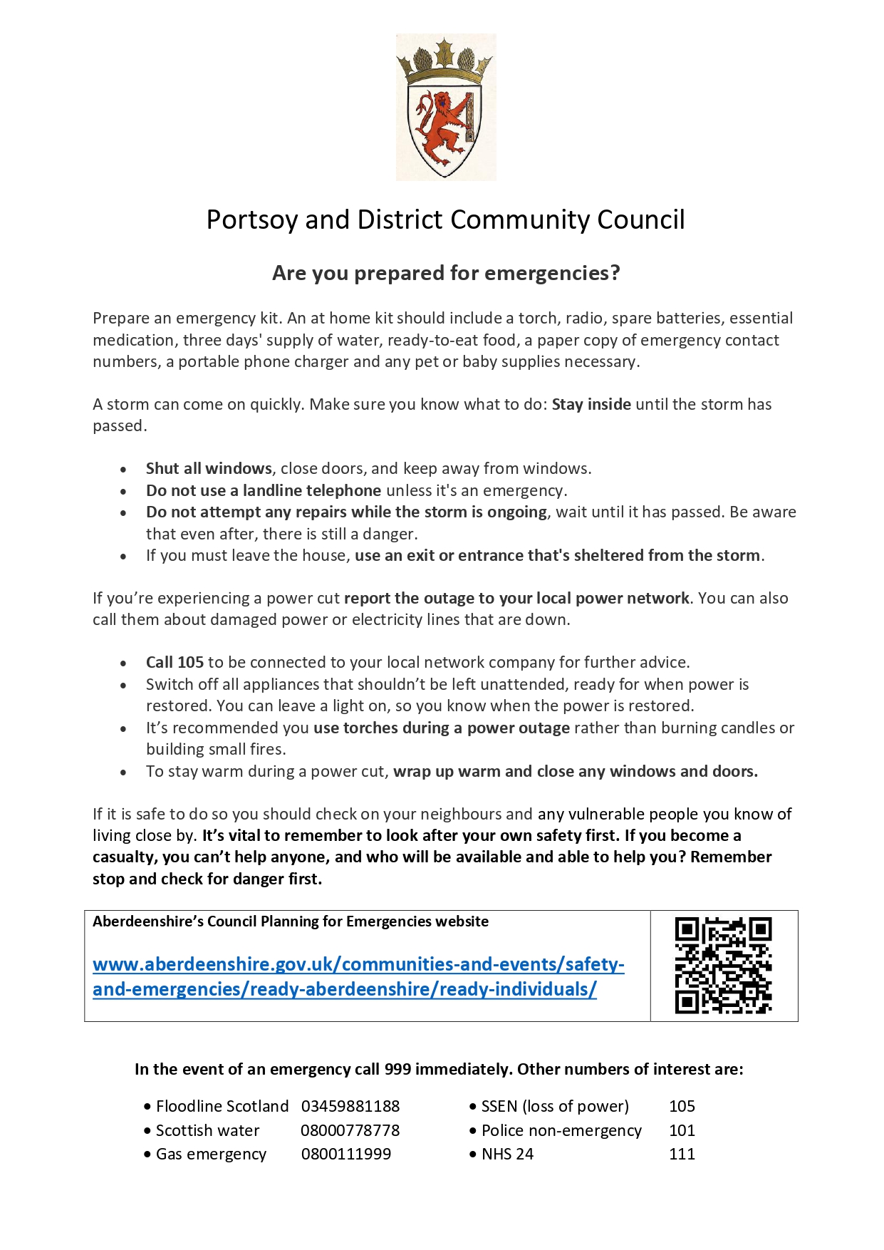 Portsoy 75 Club supported the recent distribution of Planning For Emergencies information leafets to the