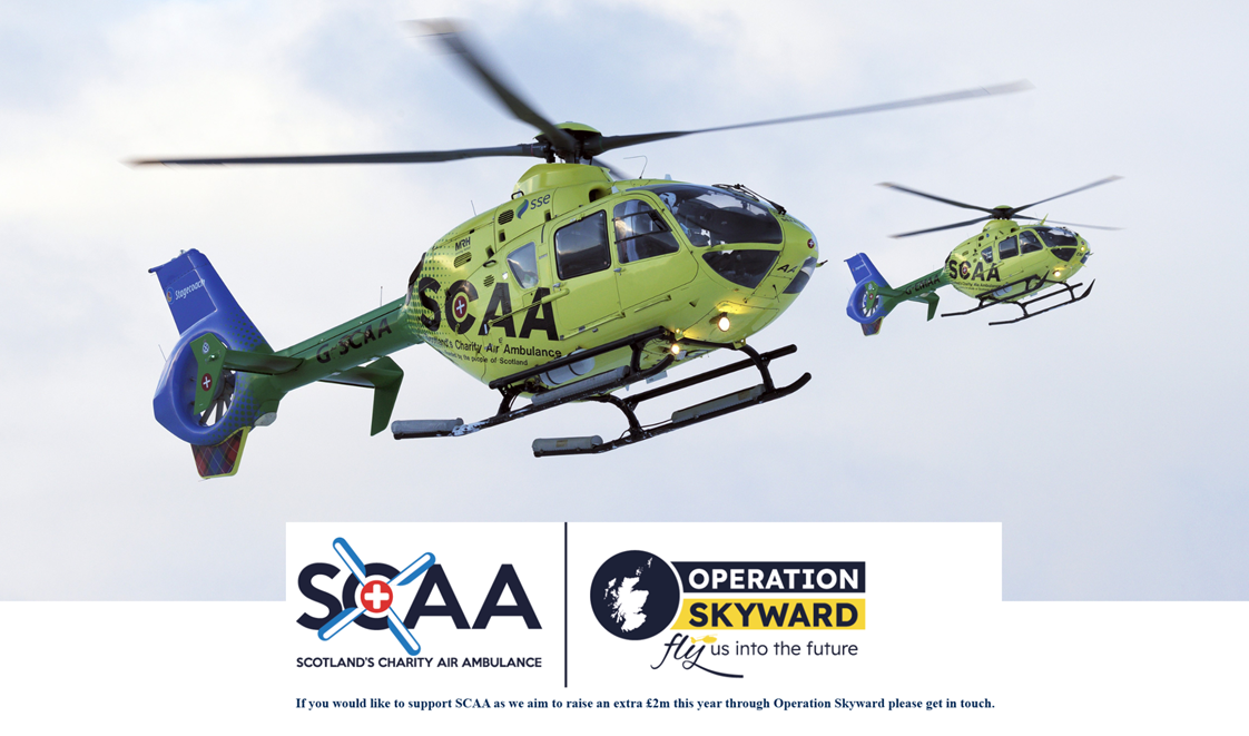 A valuable resource for our local communities, SCAA is Scotland’s only charity air ambulance and is funded entirely by the generosity of the people of Scotland.